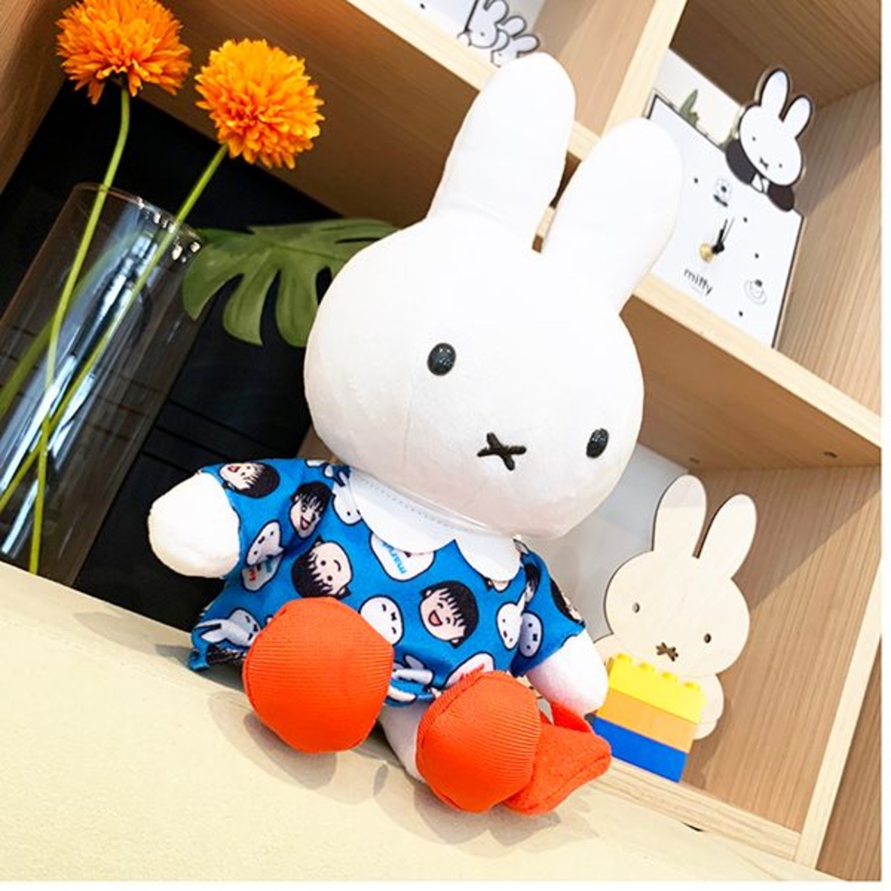 ミッフィーがちびまる子ちゃんとコラボしてぬいぐるみが登場♪お洋服にちびまる子ちゃん柄が描かれていてとっても可愛いです♪ミッフィー好きにもちびまる子ちゃん好きにもピッタリです♪
