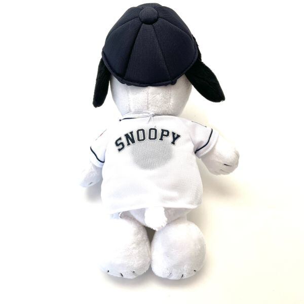 プロ野球コラボぬいぐるみ埼玉西武ライオンズスヌーピーです。キャップとユニフォームを着たかわいいスヌーピーです。野球観戦のお供に◎