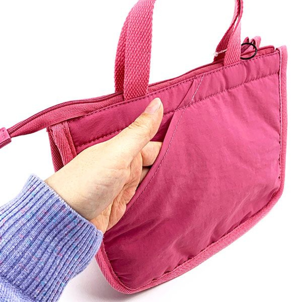 簡易保冷機能付きルートート「サーモキーパー」。インナーポケットに保冷剤を入れてご利用いただけます。毎日のお弁当に便利なサイズ。トップファスナーがついているので、中身がこぼれ落ちる心配もありません。クッション性があり、安心して持ち運べます。デイリー使いだから、いつでも清潔に♪洗濯可能で、衛生的に安心してご利用いただけます!