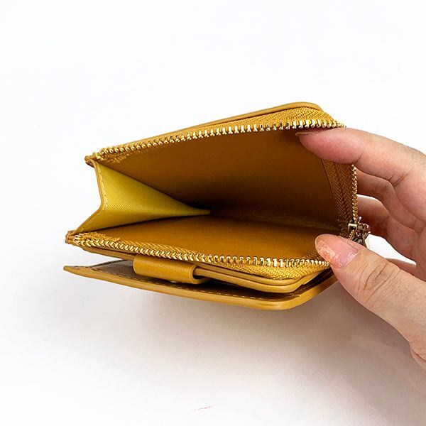 ゴールド箔のミッフィーのおかおがポイント。内側にはポケット3つとお札入れの収納スペースがあります。