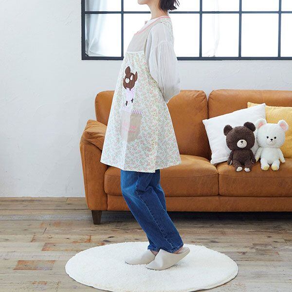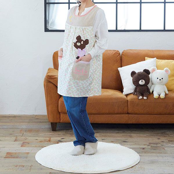 くまのがっこう 花柄 エプロン キッチン 日用品 家事 料理 保育園 幼稚園