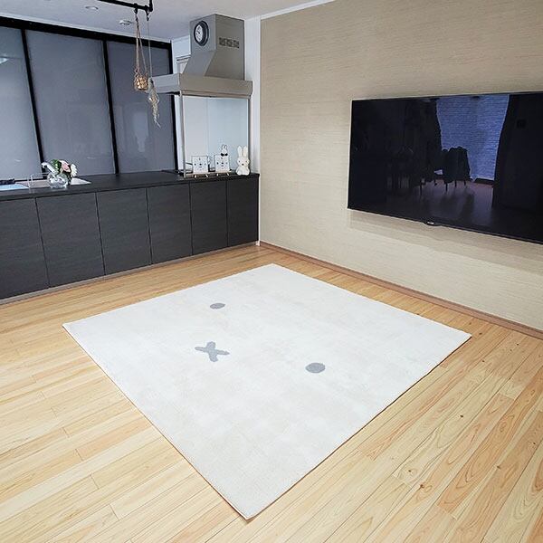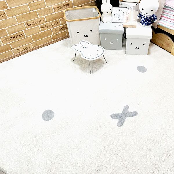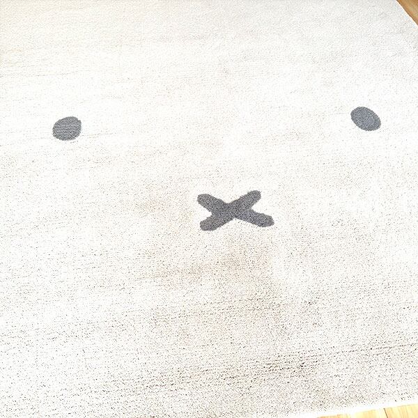 【パーフェクトワールドトーキョー限定】ミッフィー フェイス ラグジュアリーラグ アイボリー/グレー 絨毯 200×200 日本製
