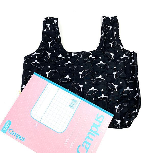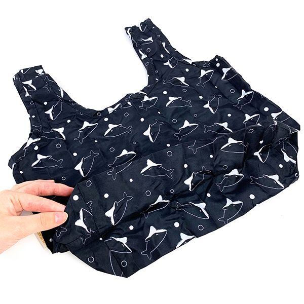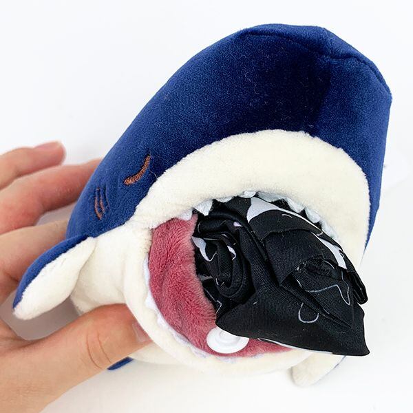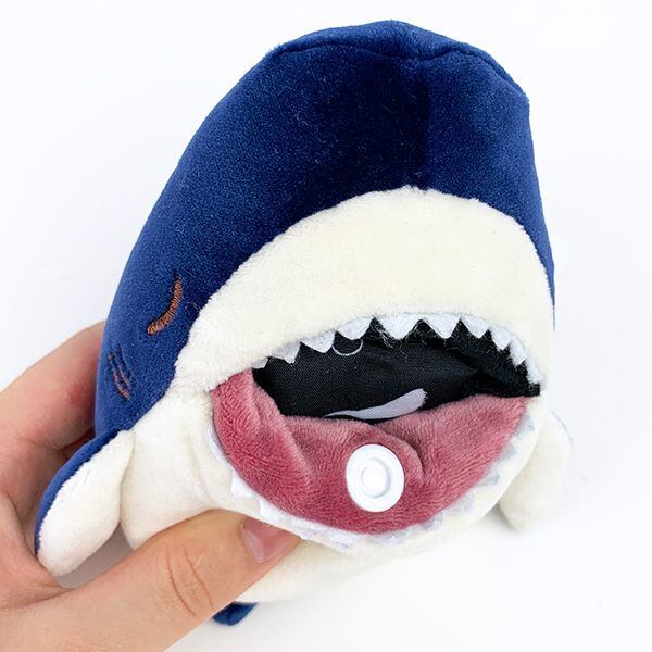 プレミアムねむねむアニマルズのかむかむズのサメのエコバッグです。口の中にキャラクター柄のエコバッグが入っていて、ストラップとしてバッグなどにも付けられるので持ち運びが便利です!エコバッグ落下防止のスナップボタン付きです♪