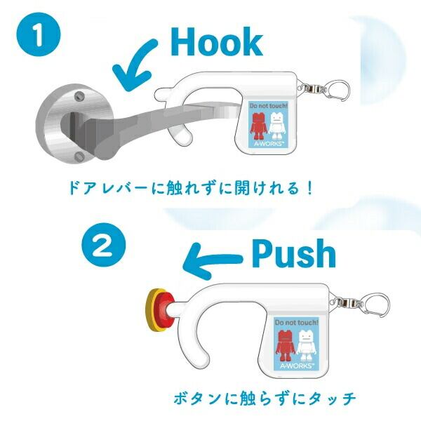 カクレモモジリ全開なウィルス対策グッズ。オフィスやお店のドアやエレベーターなどきになる部分に直接触れずにタッチできます。なんと抗菌素材。