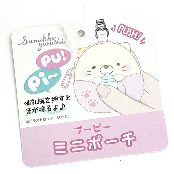 おなかを押すとプーピー♪と音が鳴る、ぬいぐるみのようなミニポーチ!すみっコたちのベビー姿もとってもかわいい♪フック付なのでカバンにつけたり、ちょっとした小物入れにおすすめです♪!