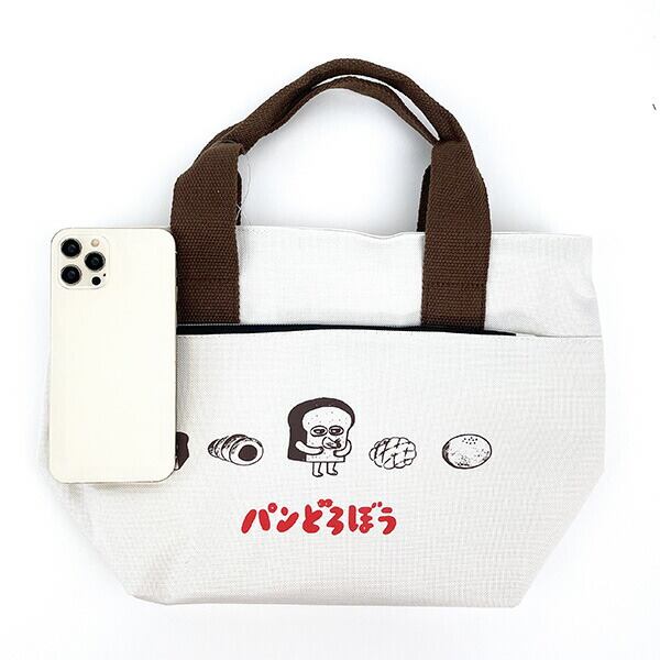 パンどろぼう ポケット付きクーラーバッグ 保冷バッグ ランチバッグ 保冷保温 お弁当 ホワイト