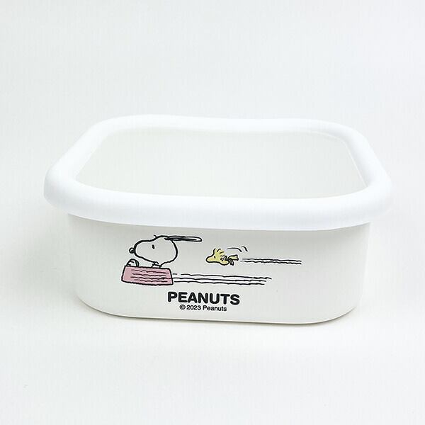 ゆったりとくつろぎムードで和やかな表情をしたスヌーピー&ピーナッツの仲間たち♪シンプルで清潔感のある琺瑯が暮らしに寄り添います◎表面がガラス質なので腐食に強く汚れやにおいがつきにくく衛生的◎角型タイプなので積み重ねたり、横に並べた時もムダな隙間ができにくく収納スペースを有効に使えます♪※電子レンジ対応不可※