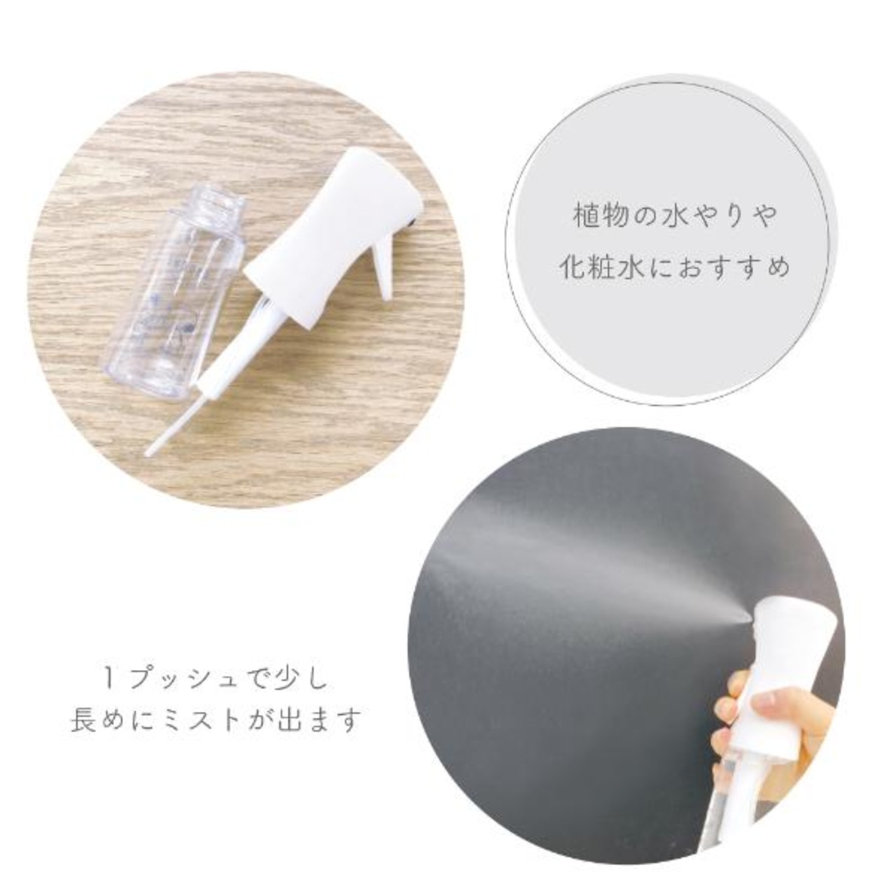 毎日のお肌のケア・植物の水やりにもとっても便利なアイテムです。1プッシュで長めにミストが出ます。置いておくだけでインテリアとしてもおしゃれですね。