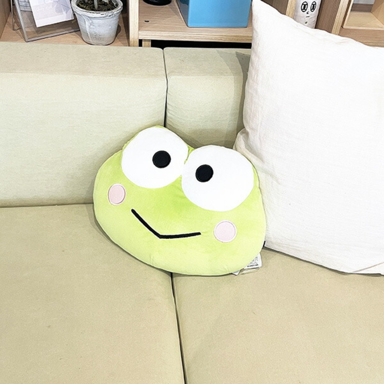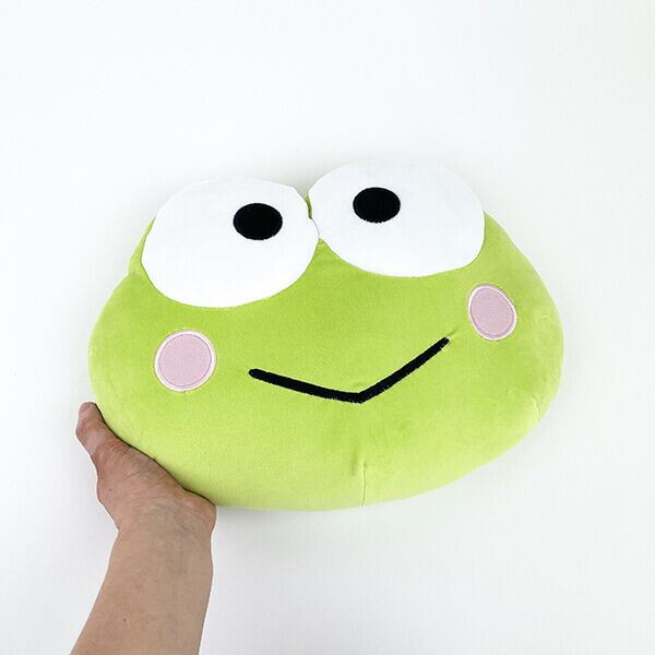 ケロッピのお顔がクッションになりました♪ダイカットデザインなのでぬいぐるみ見たいです!!クッションだけどインテリアとしても映えます♪
