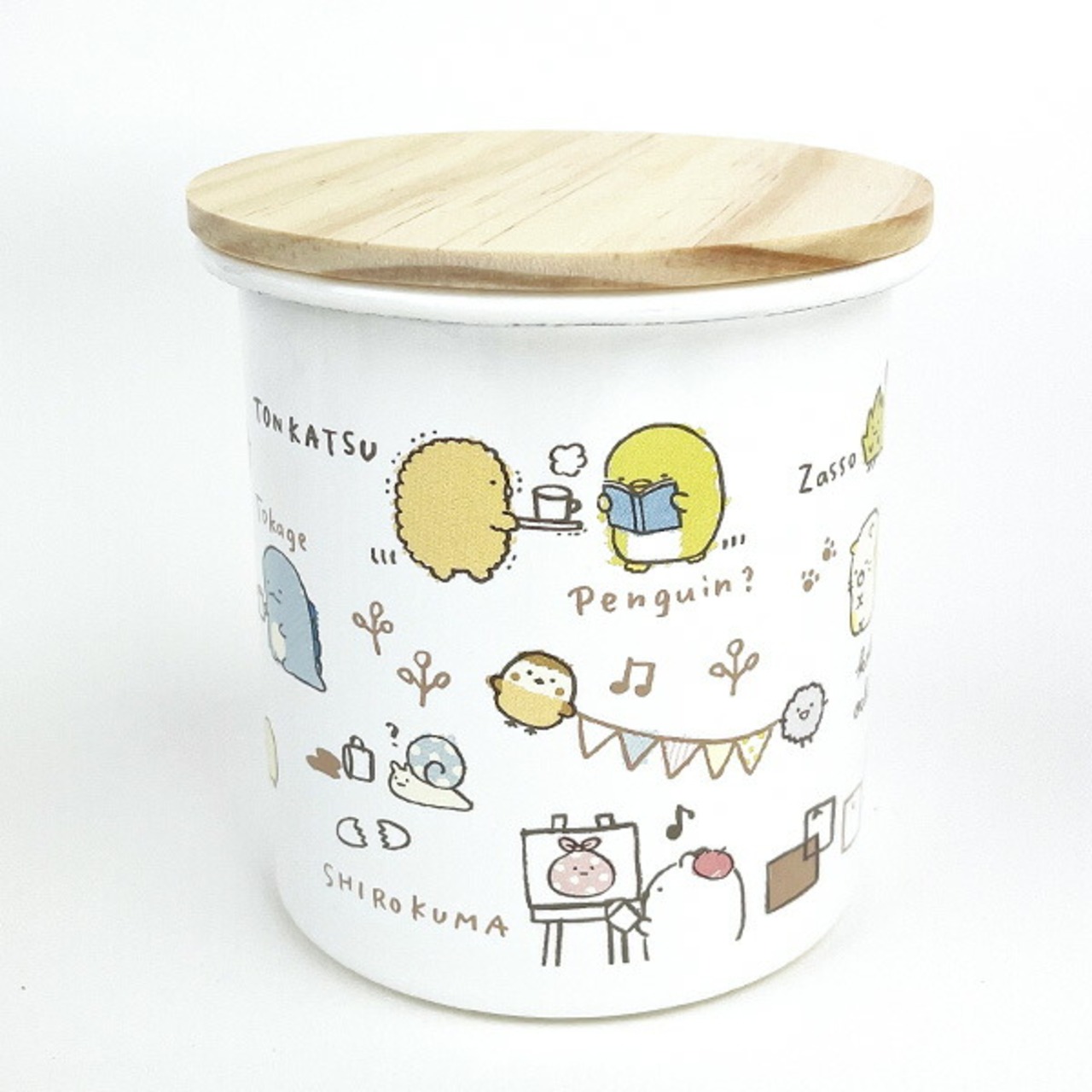 すみっコぐらしのホーローキャニスターです。生活に寄り添うモチーフがとてもほっこりするデザインです♪お菓子やお砂糖、コーヒー豆などのストックに◎【容量:750ml】