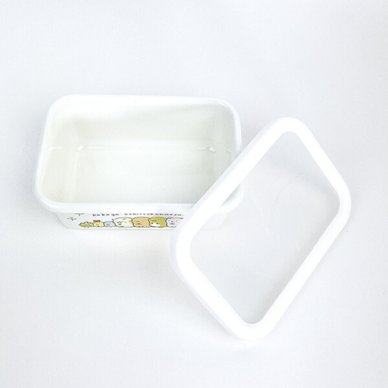 すみっコぐらしのホーローレクタングルストッカーです。生活に寄り添うモチーフがとてもほっこりするデザインです♪作り置きや残り物のストックに◎【容量:940ml】※電子レンジ使用不可!