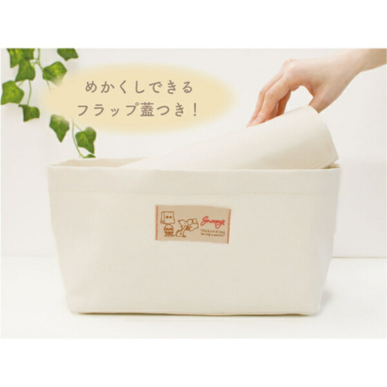 スヌーピーのめかくしバスケットです。インテリアに馴染むデザインが◎めかくしできるフラップ蓋付きです。衣類などの収納にもおすすめ♪