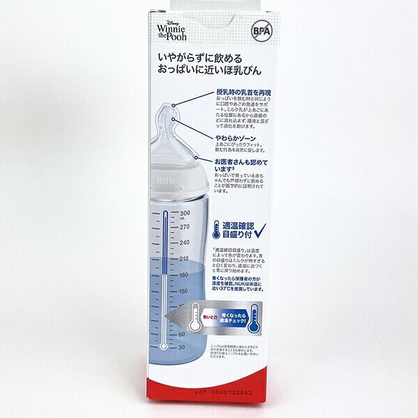 すべての赤ちゃんが最初から上手におっぱいを飲めるわけではありません。ほ乳びんをスムーズに受け入れてくれない赤ちゃんもいます。ヌークのほ乳びんは、おっぱいと同じ口のカタチと運動で飲むことができるから、おっぱいで育っている赤ちゃんでも戸惑わずに飲むことができます。「哺乳瓶拒否」で悩んでいるママに試してほしい、おっぱいに近いほ乳びんです。ミルクの飲み頃の適温がわかるメモリ付き。
