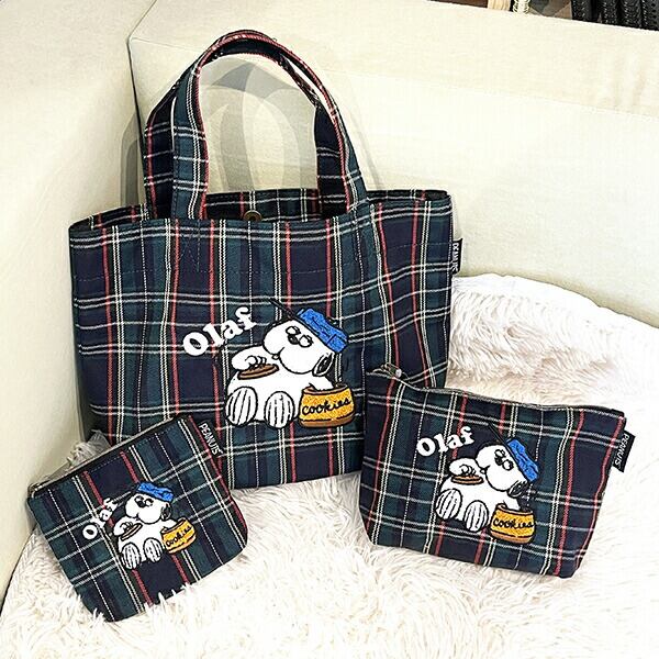 SNOOPY オラフ チェック ミニトート バッグ ランチバッグ デイユース