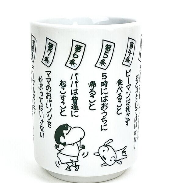 人気アニメクレヨンしんちゃんの【湯のみ】♪みさえとしんちゃんのお約束条項がデザインされています!お茶を飲むのが楽しくなること間違いなし!◎