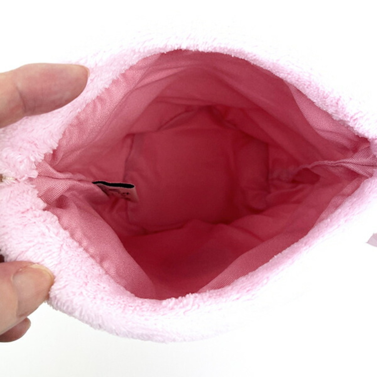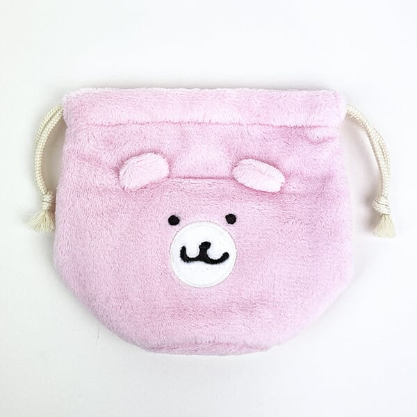 ちいかわが持っているくまさんポシェットのふわふわ素材のフェイス巾着です。これを持っているだけでちいかわとお揃いに♪