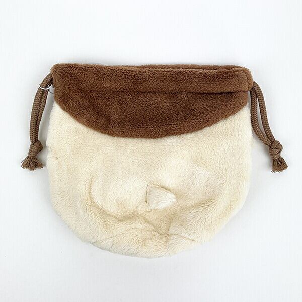 くりまんじゅうのふわふわ素材のフェイス巾着です。マチ付きなので小物の持ち運びにも便利☆愛らしい表情がとてもキュート♪