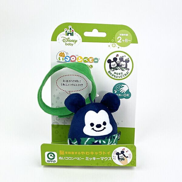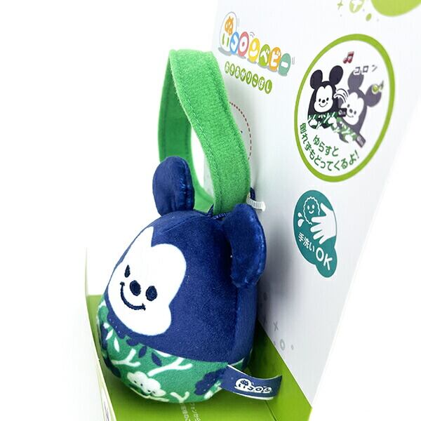 布製のおきあがりこぼしです。お子様が触ったり揺らしたりすると「リンリン」と音をさせながら元の位置に戻ってきます。耳の部分は「パリパリ」と触感や音を楽しむことで脳への刺激となり成長を促してくれます。お出かけ時にベビーカーなどにも取り付け可能なベルト付きです。サイズはギフト用パッケージサイズ表記となります。ギフトにも人気商品です。ミッキーマウスは「松」をイメージした和柄デザイン。松が葉の色を緑に保つように、すこやかさ願いを込めたデザインとなっております。