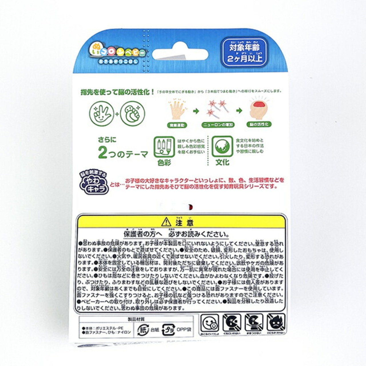 布製のおきあがりこぼしです。お子様が触ったり揺らしたりすると「リンリン」と音をさせながら元の位置に戻ってきます。触感や音を楽しむことで脳への刺激となり成長を促してくれます。お出かけ時にベビーカーなどにも取り付け可能なベルト付きです。サイズはギフト用パッケージサイズ表記となります。ギフトにも人気商品です。手洗いOKで衛生的に安心してお使いいただけますね。