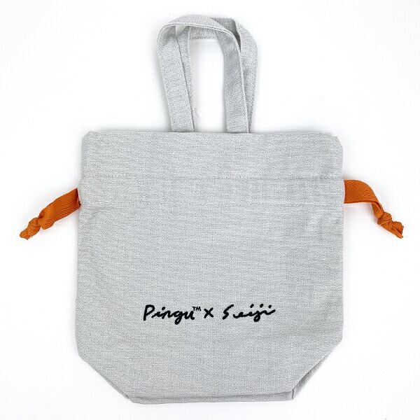 世界でいちばん有名なペンギン PINGUを、松本セイジが描き下ろしたコラボアート◎マチ付きで、スマホなど必需品を入れても余裕のある大きめサイズの巾着バックです☆彡絵柄部分は相良刺繍!