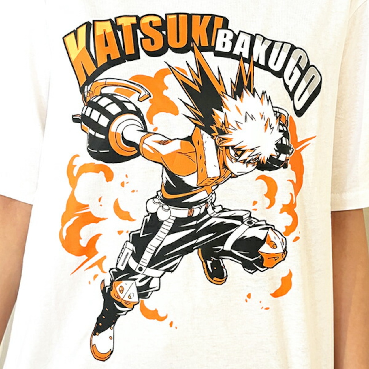 ヒロアカのかっちゃん(爆豪勝己)のTシャツです。戦闘シーンをリアルに再現☆あなたもかっちゃんと一緒にナンバーワンヒーローを目指そう〜!!