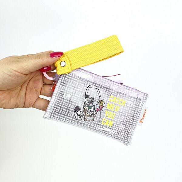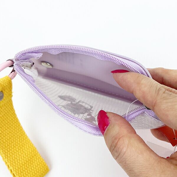 パスケースとポーチが一つになった便利な商品です。PVC素材を使用されているため濡れてもさっと拭くことができます。
