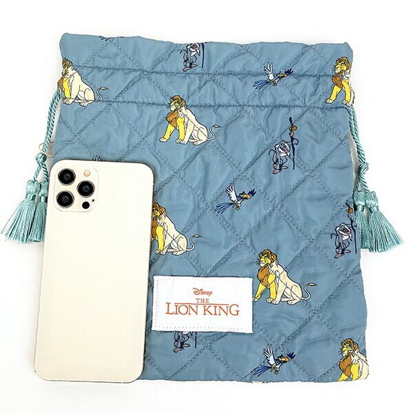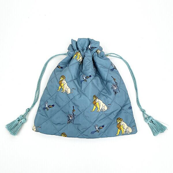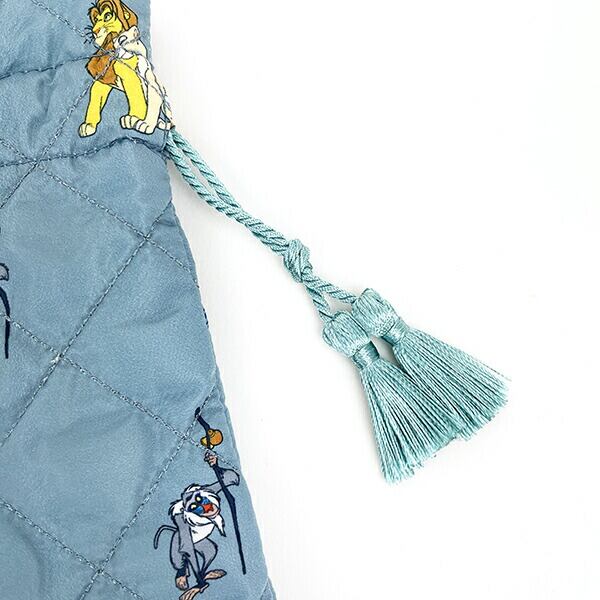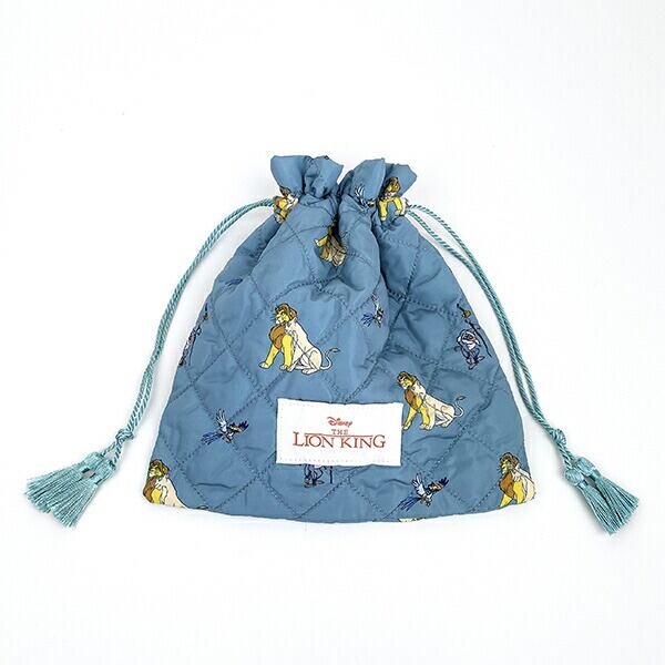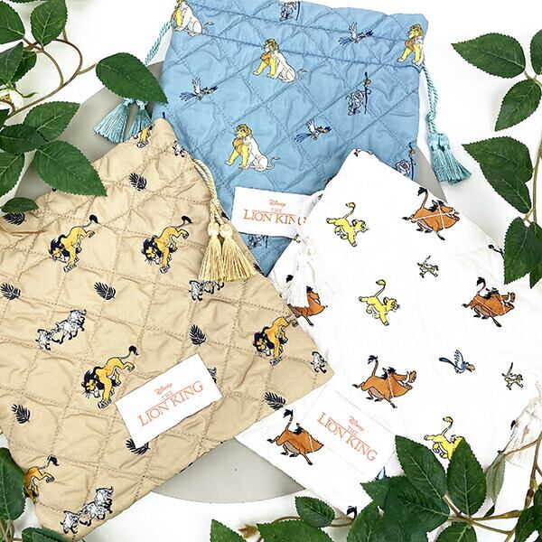 ライオンキングのキルティング巾着です。落ち着いたカラーと総柄がポイント♪程よいサイズ感でコスメや日用品を入れるのに◎本体に合わせたカラーのタッセルがかわいい☆