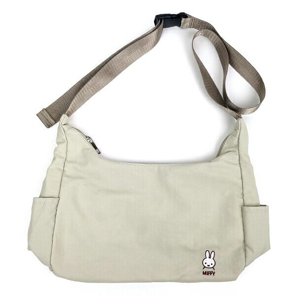 シンプルなミッフィーのショルダーバッグです。中の生地も可愛いデザインで、ポケット付き。両サイド・背面収納付きでとっても便利にお使いいただける人気アイテムです。ショルダーの長さ調節可能です。