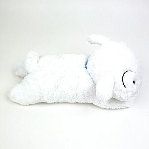 ひざの上にのせて思わずなでなでしたくなる、ほどよい重みで大きさもひざに乗せるのにちょうどいいサイズ感のシロのぬいぐるみ。癒されること間違いないです♪