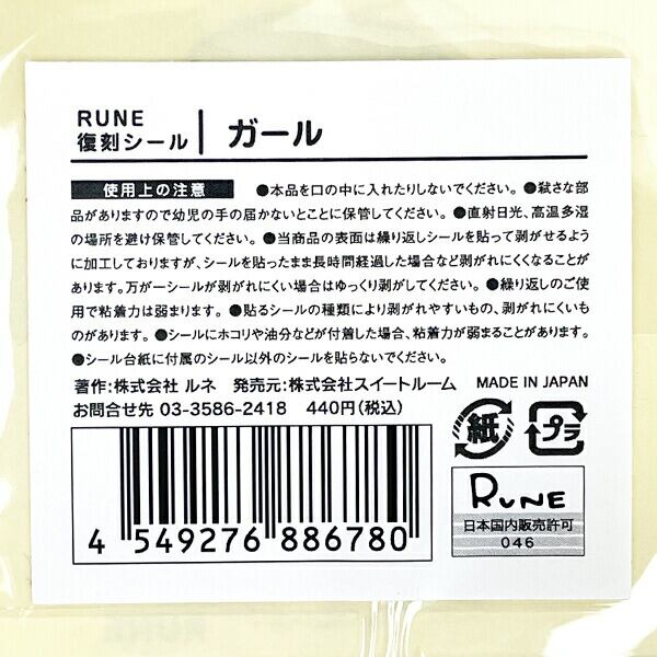 内藤ルネ ピンク髪ガール 復刻シール 文具 RUNE