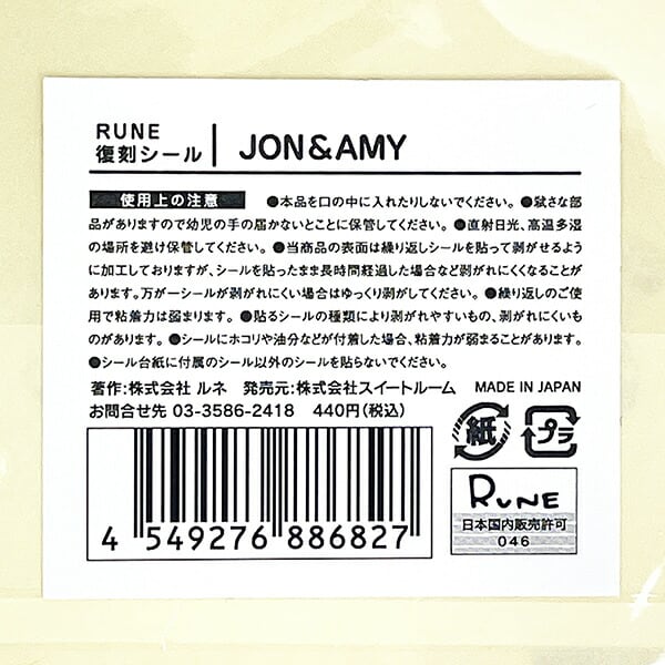 内藤ルネ JON&AMY 復刻シール 文具 RUNE