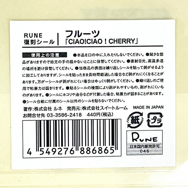 内藤ルネ CIAO CIAO CHERRY 復刻シール 文具 RUNE
