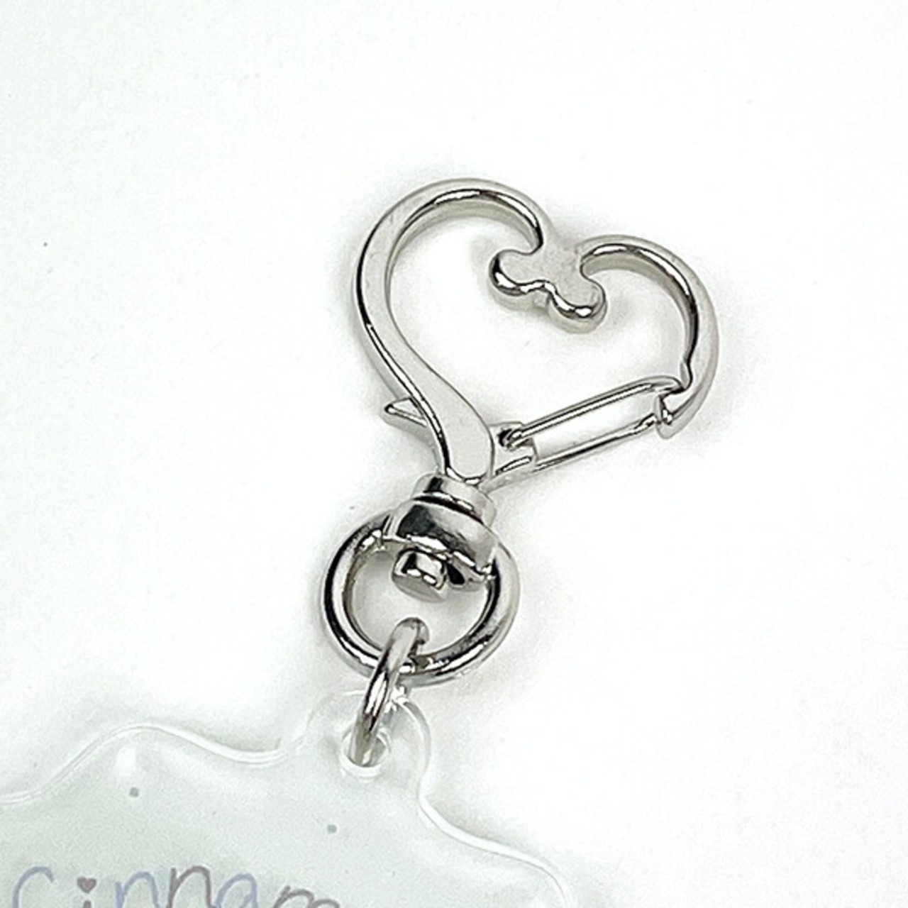シナモロールのアクリルキーホルダーです。淡い色合いでほのぼのしたシナモンがかわいいデザイン♪チャームがハート型になっているのもかわいいポイントです☆