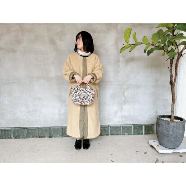 軽いのにキチンと自立するのがうれしいトートバッグです。前面のフラットポケットから持ち手がでているのがポイント。持ち歩き中にポケットがパックリと開きにくい仕様になっています。