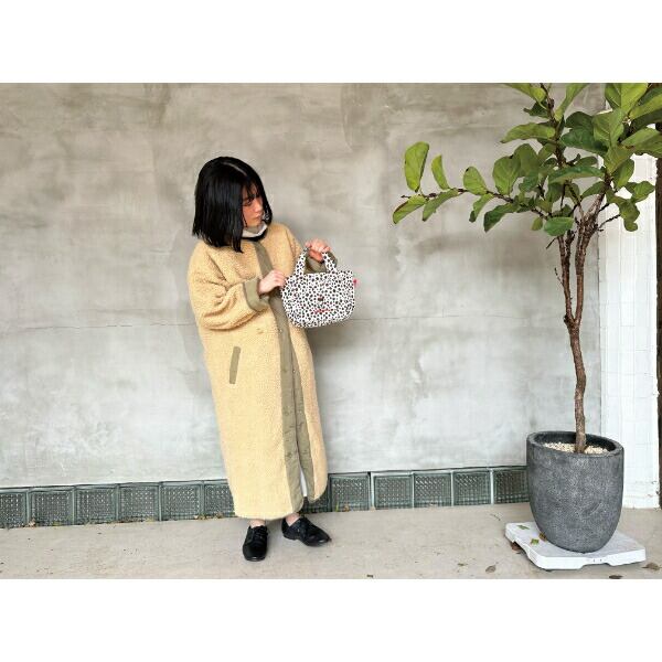 軽いのにキチンと自立するのがうれしいトートバッグです。前面のフラットポケットから持ち手がでているのがポイント。持ち歩き中にポケットがパックリと開きにくい仕様になっています。