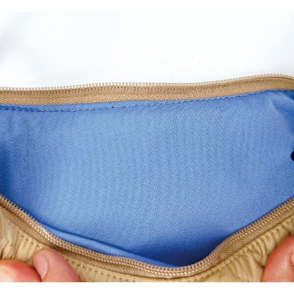 軽くてふんわり。触り心地も気持ちよいキルティングシリーズです。よく見るとキルティングのパターンがスヌーピーのシルエットに!斜め掛けのできるショルダータイプです。