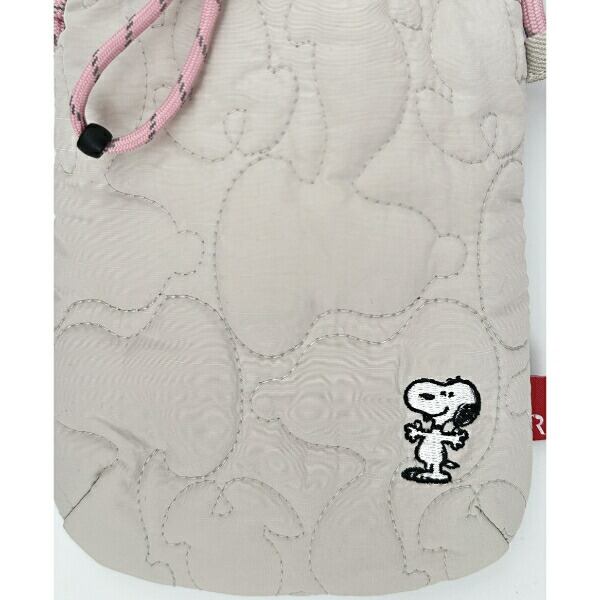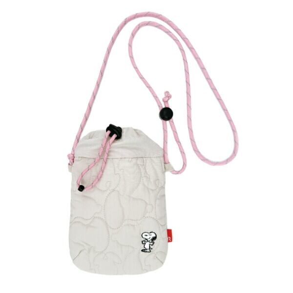 軽くてふんわり。触り心地も気持ちよいキルティングシリーズです。よく見るとキルティングのパターンがスヌーピーのシルエットに!斜め掛けのできるショルダータイプです。