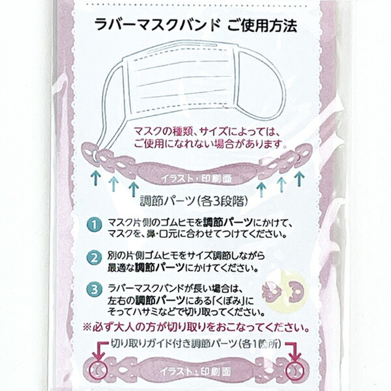 マスクの紐による耳あたりの負担を和らげます♪プレゼントでもらっても嬉しいアイテム!「くぼみ」ラインをハサミなどで切り取り、長さ調節ができます◎