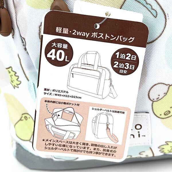 すみっコぐらしのボストンバッグです。大容量なので旅行や習い事などに◎すみっコたちがたくさんいて可愛い♪ぜひすみっコたちと一緒にお出かけしてみてください!【容量:40L】