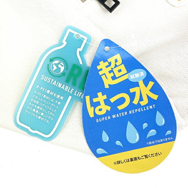 いろんな場面で安心の超撥水仕様。サガラ織り刺繍がカワイイワンポイント!!口が大きく開き内側が広く、内ポケットも付いて収納力抜群。便利なDカンとカラビナ付き。肩ひもは長さ調節可能♪