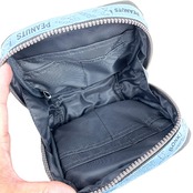 チャックが広いので大きく開きます。約75mmのマチがあり、物がたくさん入る。容量が大きくいろいろ入るので、化粧品などひとまとめにして持ち運びも◎刺繍のワンポイント入り♪