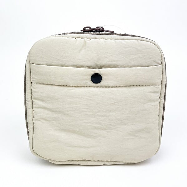 チャックが広いので大きく開きます。約75mmのマチがあり、物がたくさん入る。容量が大きくいろいろ入るので、化粧品などひとまとめにして持ち運びも◎刺繍のワンポイント入り♪