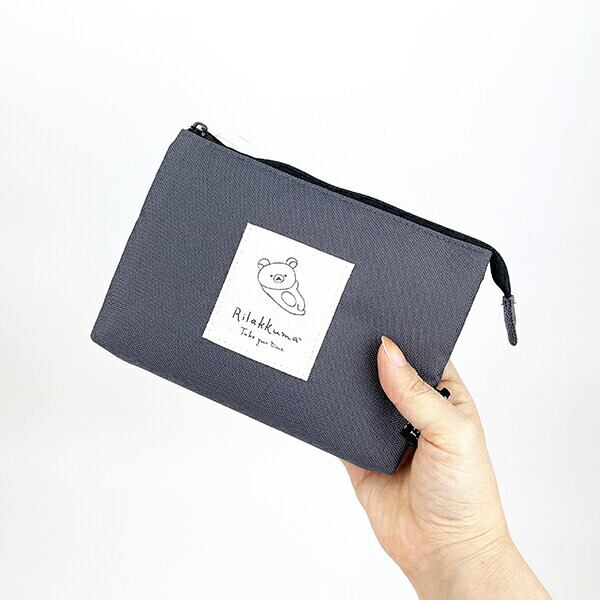 リラックマ 3ポケットポーチ3 RE-PET チャコールグレイ Drawing ポーチ 小物入れ 化粧品入れ