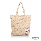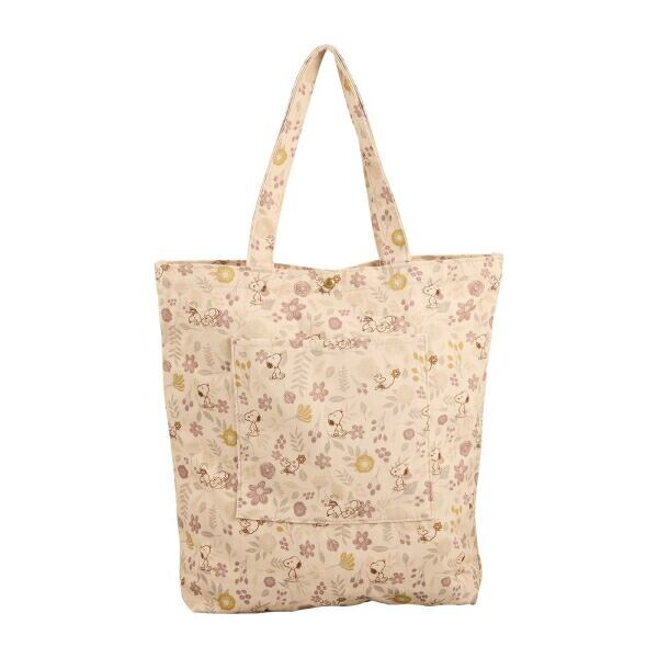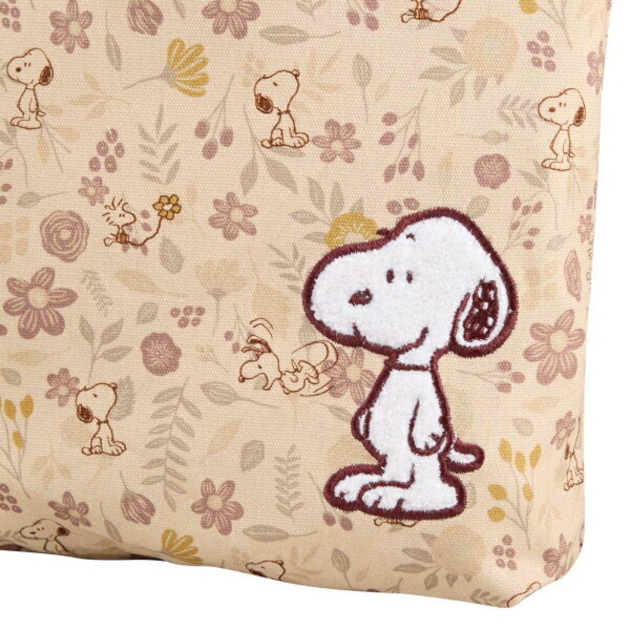 スヌーピー 刺繍 帆布トートバッグ ナチュラル (フラワーガーデン)