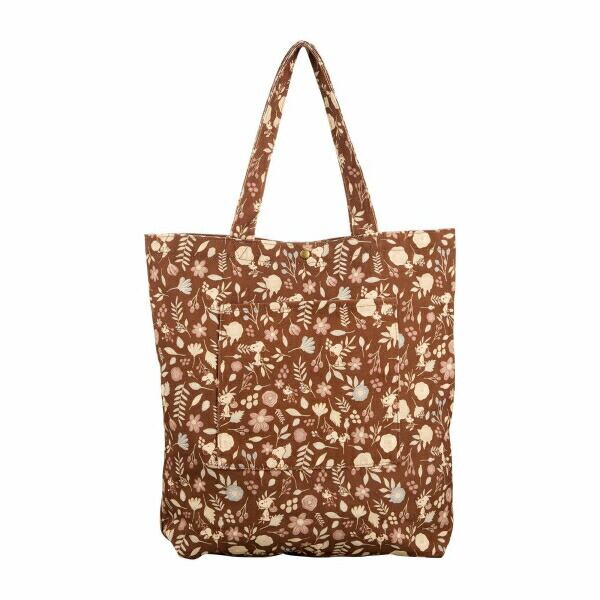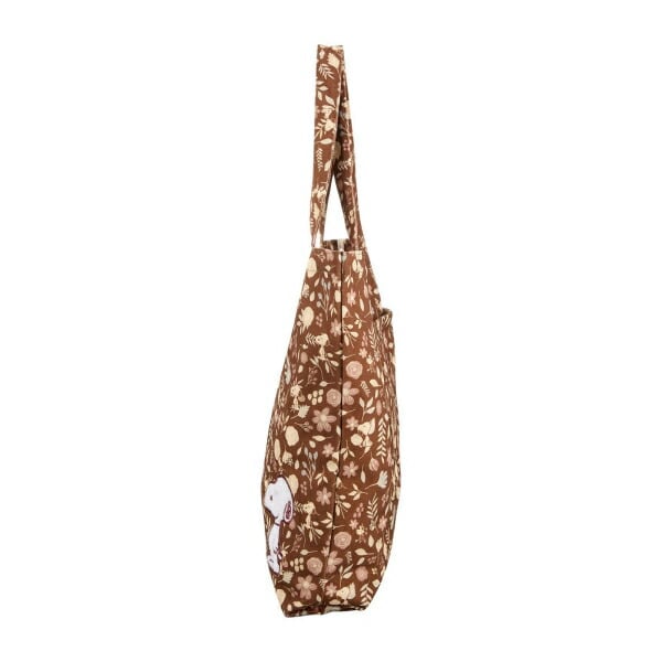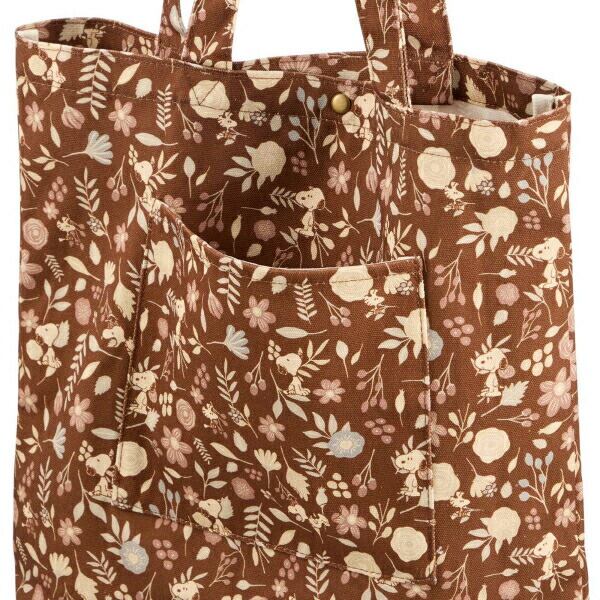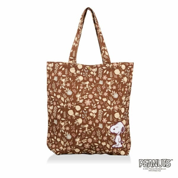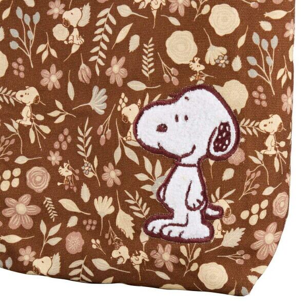 スヌーピー 刺繍 帆布トートバッグ ブラウン (フラワーガーデン)
