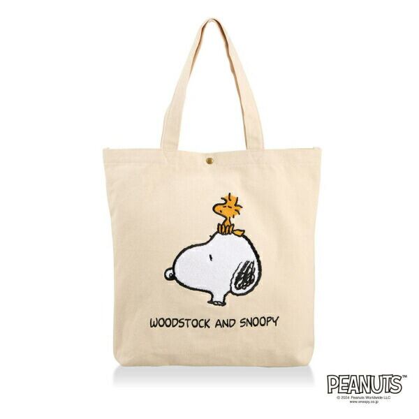 スヌーピー 刺繍 帆布トートバッグ ナチュラル (スヌーピー & ウッド)