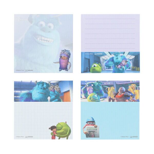 モンスターズインクのスクエアメモです。映画で見たことのあるあのシーンが採用!4柄各25枚ずつあるので、たくさん使えて嬉しい☆