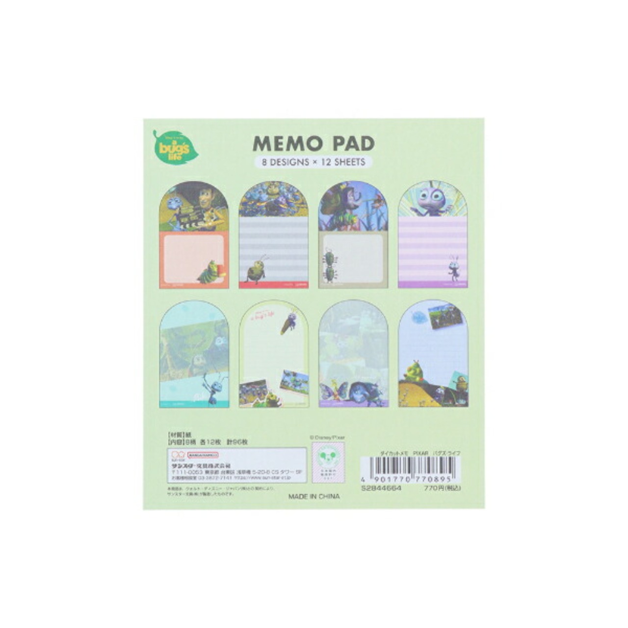 バグズライフのダイカットメモです。映画のワンシーンを思い出す柄数の多いのがポイント♪あなたのお気に入りのシーンはあるかな?8柄各12枚ずつあるので、たくさん使えて嬉しい☆