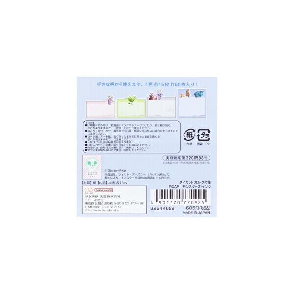 ディズニー ピクサー モンスターズインク ダイカットブロック付箋 文具 Disney 日本製