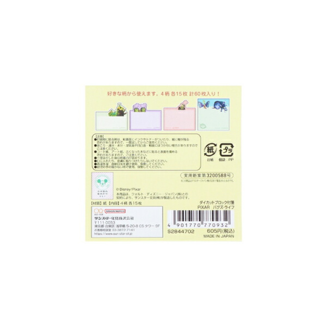 ディズニー ピクサー バグズライフ ダイカットブロック付箋 文具 Disney 日本製